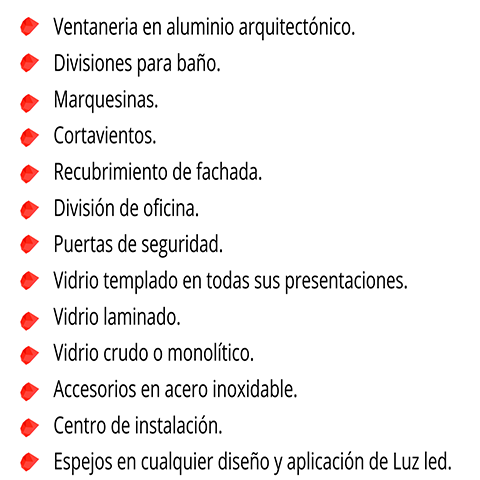 Fachadas en aluminio - Divisiones de baño - Divisiones de oficina - Puertas y ventanas - Cielo falso